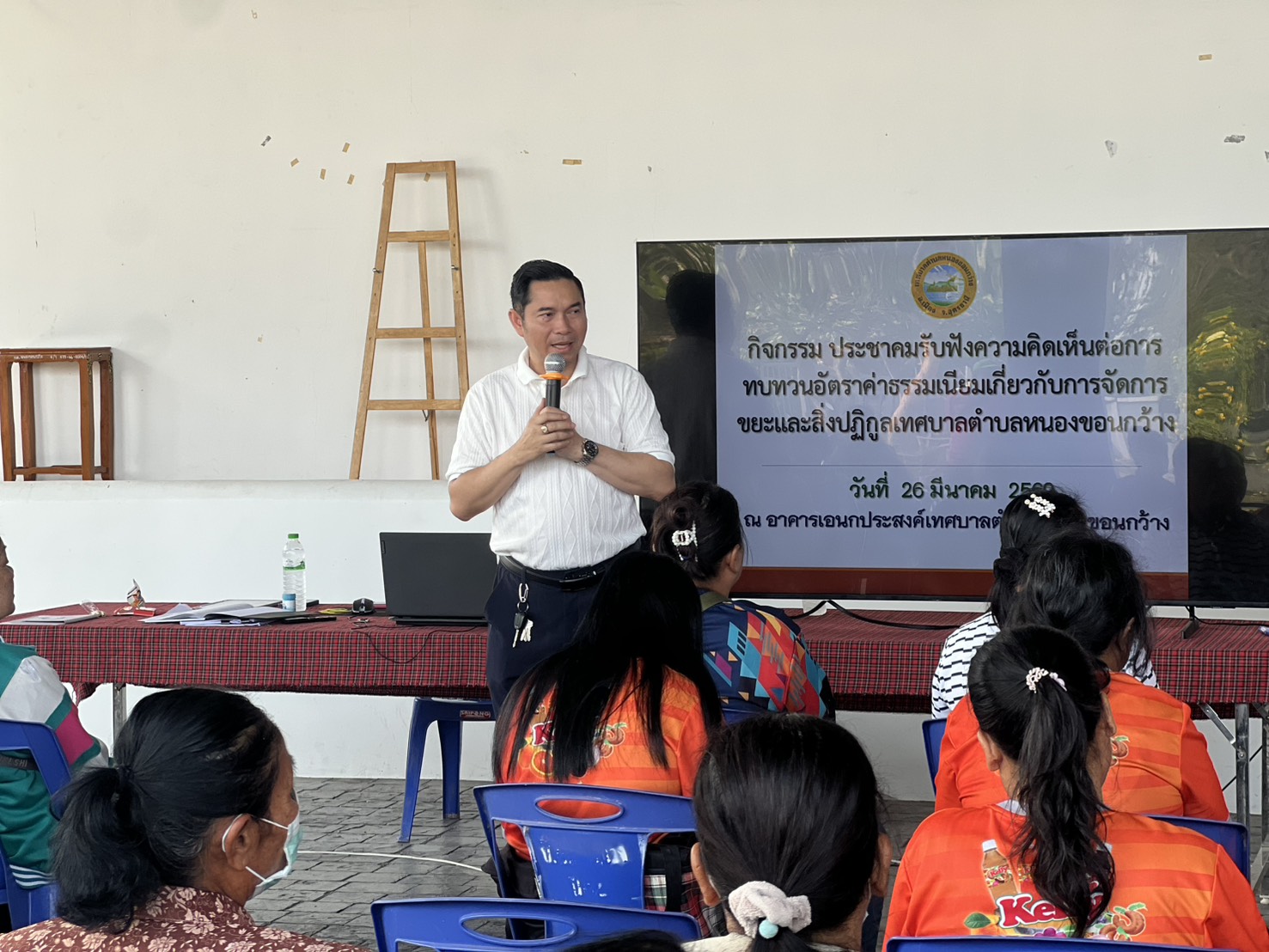 กองสาธารณสุขและสิ่งแวดล้อม ได้จัดประชุมประชาคมรับฟังความคิดเห็นการทบทวนอัตราค่าธรรมเนียมเกี่ยวกับการจัดการสิ่งปฏิกูลและมูลฝอยในเขตตำบลหนองขอนกว้าง นำโดยดร.กริช ฤทธิลี นายกเทศมนตรีตำบลหนองขอนกว้างพร้อมคณะผู้บริหาร ข้าราชการและพนักงาน เข้าร่วมประชุมในครั้งนี้