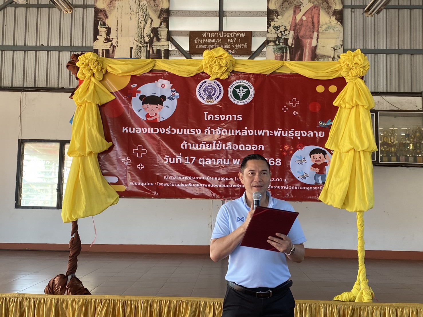 วันที่ 17 ตุลาคม 2568 ดร.กริช ฤทธิลี นายกเทศมนตรีตำบลหนองขอนกว้าง เป็นประธานในพิธีเปิดโครงการ หนองแวงร่วมแรง กำจัดแหล่งเพาะพันธุ์ยุงลายต้านภัยไข้เลือดออก ซึ่งเป็นโครงการของวิทยาลัยราชธานี วิทยาเขตอุดรธานี ในโครงการมีคณะอาจารย์ นักศึกษาคณะพยาบาลศาสตร์ให้ความรู้แก่ประชาชนในพื้นที่